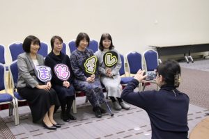役員手作りの「まなざしの会”推し”うちわ」を持って記念撮影